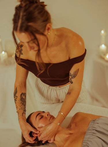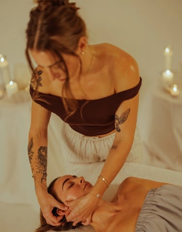 This is a state of healing- a reset for your mind, body, skin, and soul. Through intentional touch, we move stagnant energy, release stored tension held in the face, and regulate the nervous system. Your skin receives what it needs and the result is skin that glows from the inside out, and a nervous system that feels deeply restored.